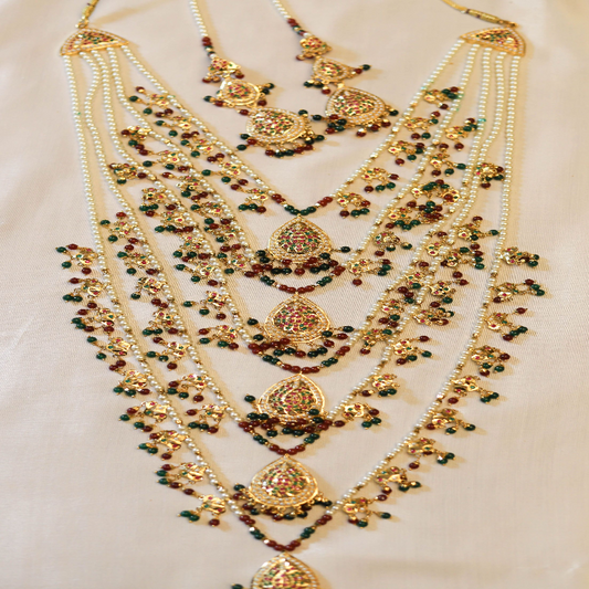 6 carat gold plated satlada 7-layer pearled necklace with polki